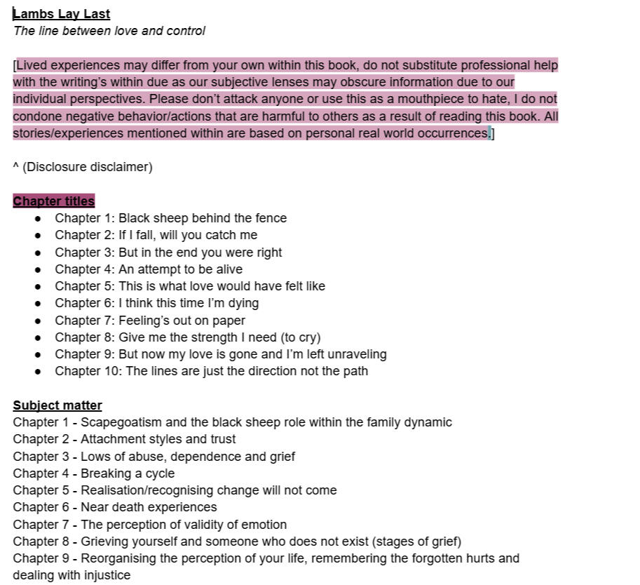 I write horror and I suppose angst (loss, unrequited love) along side darker topics however l also write romance and fantasy though my strong suite is definitely emotive stories; stories that drive emotions out of people.That saying I do try and incorporate my real life experience to make my work human, personal and relatable to the consumer if it calls for it. An example would be the NPC Aurelia from HorseLife on Roblox that I write for. Another important note is that I am disabled and I have health issues; I may misspell words, struggle with communication or may need to request deadline extension if an emergency comes up - if that makes you uncomfortable then I am not the employee/artist/writer/game tester/etc for you. My ability to produce good work for you requires your understanding and empathy.